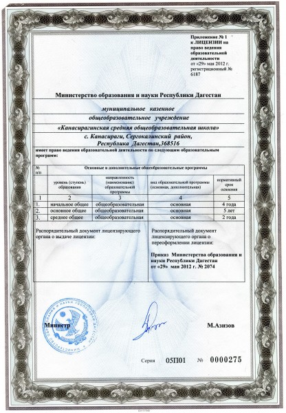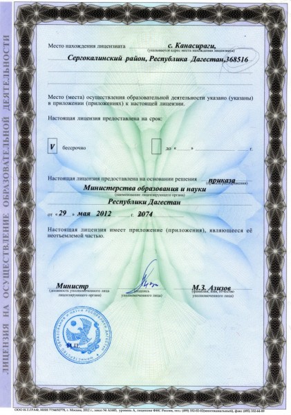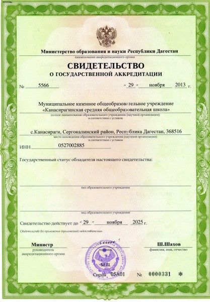 | Адрес местонахождения образовательной организации* | 368520, Республика Дагестан, Сергокалинский район, с.Канасираги |